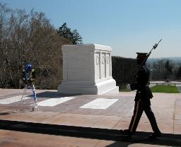 Tomb of the Unknowns: The white marble tomb contains bodies of three unidentifiable soldiers: one from WW I, one from WW II, and one from the Korean War. On one side it says, "Here rests in honored glory an American soldier known but to God."